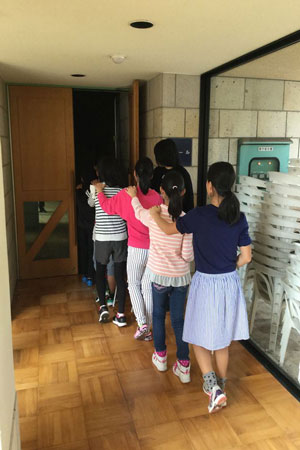 校舎内は土足厳禁です。暗闇を安全に体験にいただくため、スリッパではなく、かかとのある動きやすい靴をご用意ください。
